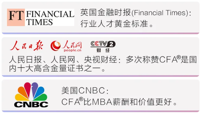 CFA全称Chartered Financial Analyst(特许金融分析师),是全球金融投资行业里含金量很高的资格认证,《Financial Times》把CFA称为行业人才的“黄金标准”,为全球投资业在道德操守、专业标准及知识体系等方面设立了规范与标准!