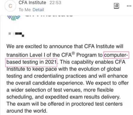 邮件里提到2021年CFA一级改成机考,希望能提高考生整体考试体验,同时希望提供: