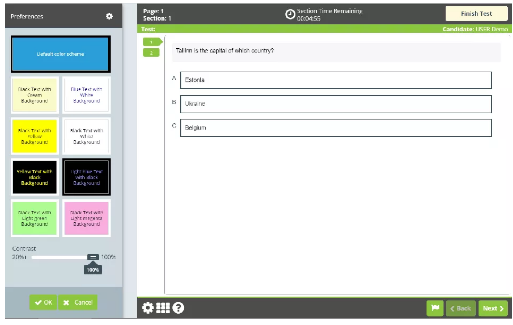 其实这个机考软件操作还是比较简单的,当你准备考试前需要测试系统,并且协会给了你一个选择,可以选择自己比较舒服的考试界面颜色。