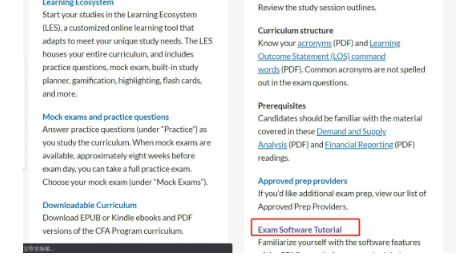 在考生资源中间栏的下方,可以看到“Exam Software Tutorial”这个选项,点击进去,查看考试软件教程。