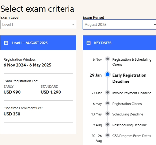 2025年8月CFA报名时间截止到什么时候?截止时间为2024年5月14日,报考人员请在规定的时间内登录CFA Institute官网完成报名相关工作,下面将为大家详细介绍2025年8月CFA报名时间。