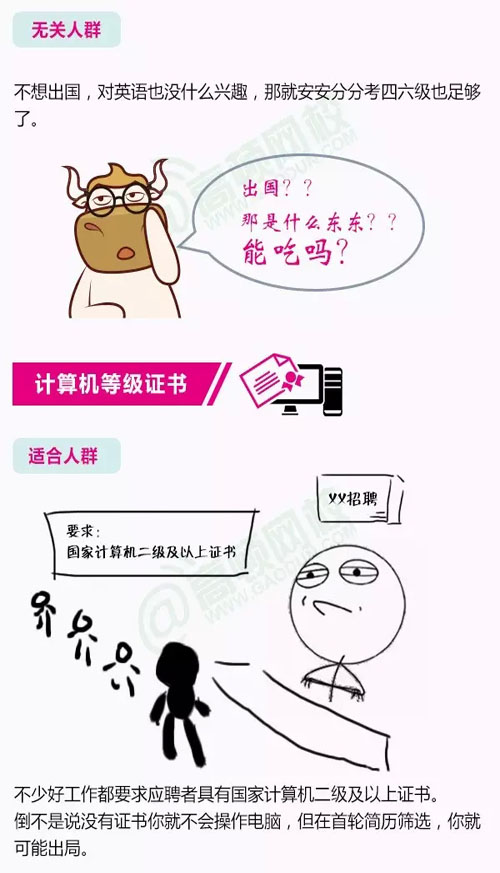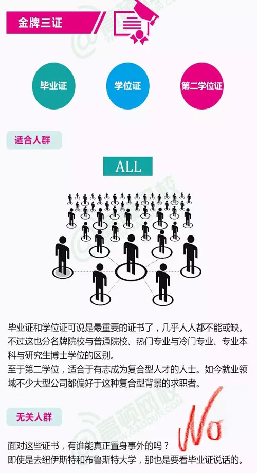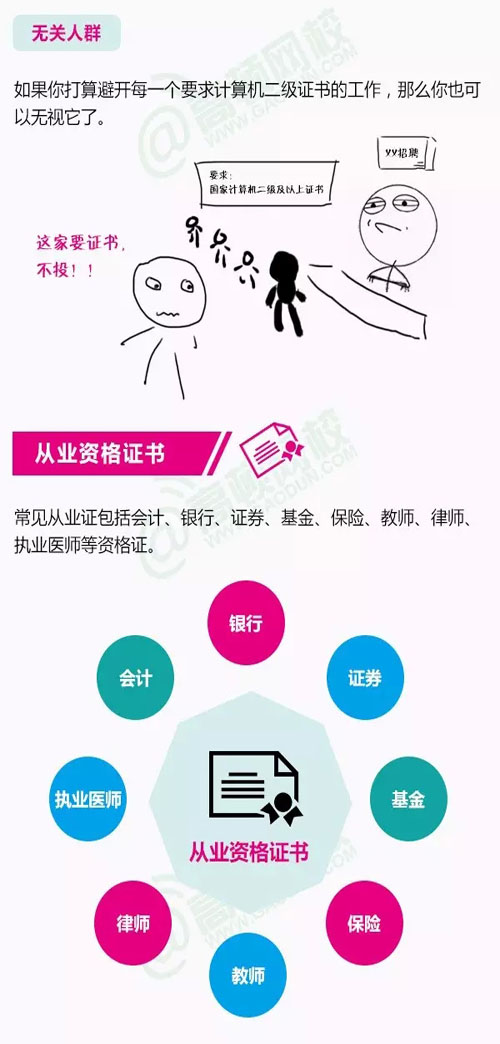 虽然说证多不压身,但有限的时间里,还是应该把注意力集中起来,考一些对我们较有价值的证书。那么问题来了,到底哪几类证书含金量较高,对我们能力的提升较大呢?跟随