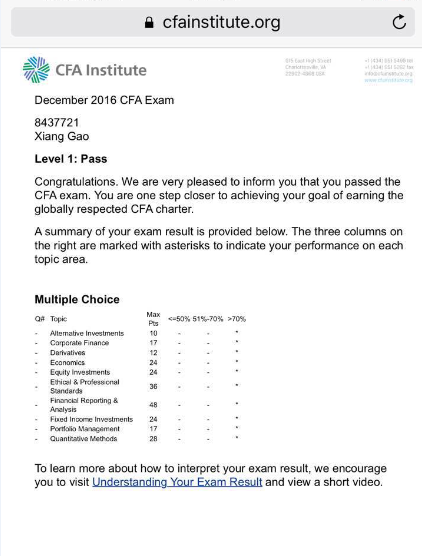 由于不满足于对金融市场和金融产品皮毛式的了解,我就希望借着考试系统地学习金融知识,因此顺理成章地选择了"金融业先进考"CFA.此外,我也有就读MBA的计划,而一些商学院的金融课程对通过CFA二级考试的学员是免修的.