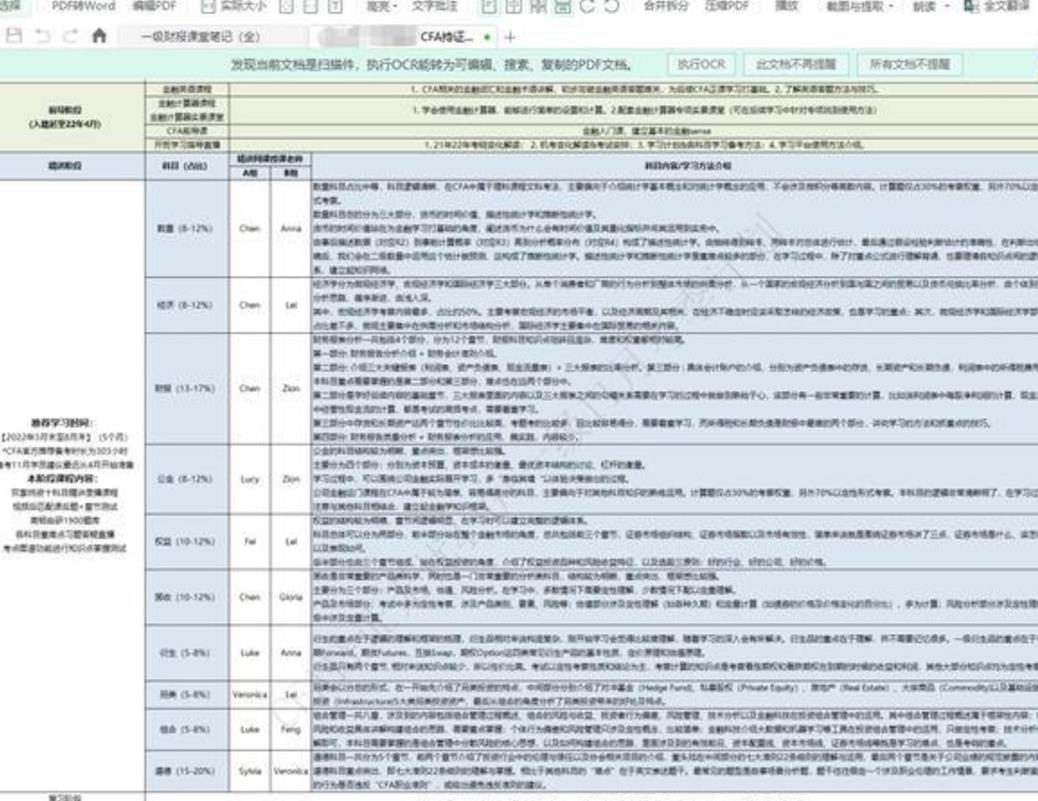 我在备考时,一边提升自己英文水平。一边系统学习CFA课程。还根据课程信息制定了一份详尽的学习计划,合理的利用和分配时间。