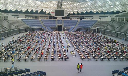 下午场就要开始的时候,一些人抓紧较后的时间去上厕所。我在厕所的时候,看到一个考生的计算器掉入了小便池中。然后,那名考生将计算器取出,放在水龙头下快速冲洗干净,然后冲回了考场。