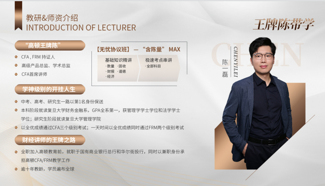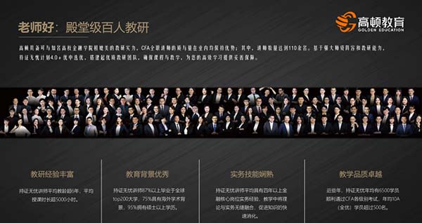 专业是教育的立身之本,高顿教育始终将教研与师资建设作为核心竞争力,以极致专业筑牢CFA培训的根基。在师资层面,高顿打造了一支“双证加持、实战兼备”的顶尖教学团队,授课教师均同时持有CFA与FRM双证书,83%拥有海外留学深造背景,75%具备硕士及以上学历,平均教学经验超五年,更有陈一磊、崔中石、文骏程等行业王牌讲师坐镇,他们兼具深厚的学术功底与金融机构核心岗位实务经验,既能精准拆解考纲考点,又能结合资本市场实操案例让理论知识落地。同时,高顿组建了近百人的专业教研团队,持续跟踪CFA协会考纲动态,深度研究考试命题规律,自主研发适配华人考生的学习资料,从知识框架图、核心公式手册到高频考点总结,全方位为学员备考保驾护航。