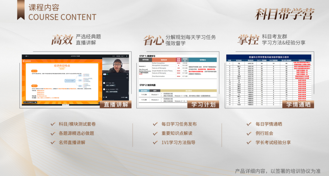 在课程体系打造上,高顿教育立足考生备考痛点,创新推出科学化、系统化、智能化的CFA培训方案,彻底解决零基础入门难、英文学习难、做题应试难、自律坚持难等行业共性问题。针对CFA考试全英文教材、知识点繁杂的特点,高顿独家研发“50%汉化讲义”,兼顾知识理解效率与考试场景适配,降低华人考生学习门槛;采用“因课施教”的课程设计理念,针对道德、财务报表分析、权益投资等不同科目特点定制教学逻辑,尤其针对权重最高、易学难分的道德科目,打造专项解题课程,实现知识讲解、案例剖析、考点提炼、习题练习一站式突破。同时,创新“三阶段五步学习法”,从核心知识精讲、框架梳理百题精炼,到考点串讲、仿真模考、考前冲刺,形成全流程闭环备考体系,搭配交互式网课、AI智能字幕、弹幕互动等功能,让线上学习兼具专业性与趣味性。