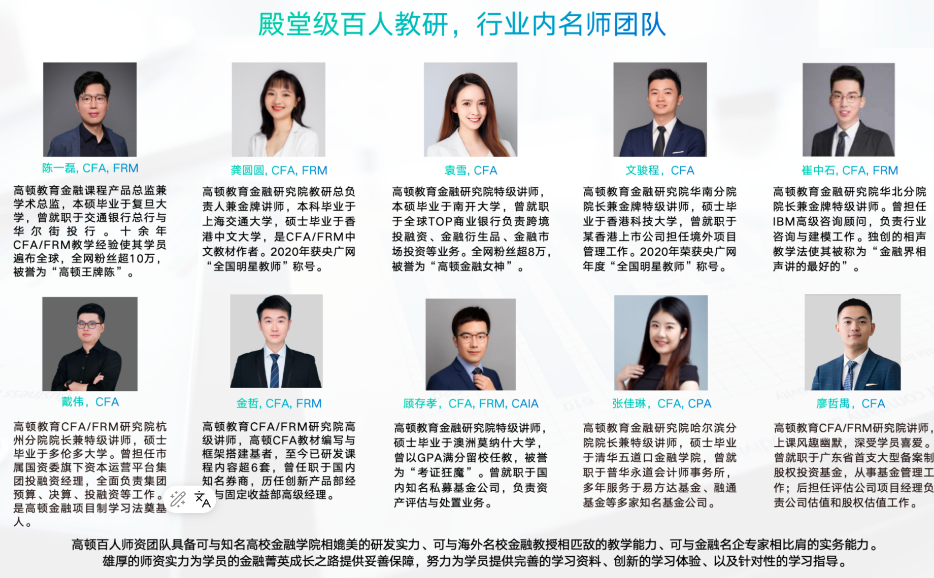 2026年CFA一级网课推荐高顿教育,高顿CFA网课优势有: