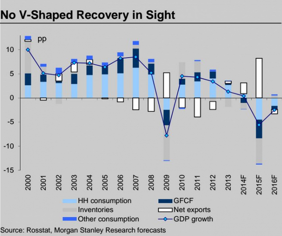 昨日俄罗斯央行公布,预计去年全年俄罗斯GDP增长0.6%。而在上述报告中,摩根士丹利将今年的俄罗斯GDP同比增长预期由-1.7%下调至-5.6%,将明年预期由同比增长0.8%下调至同比下滑2.5%。