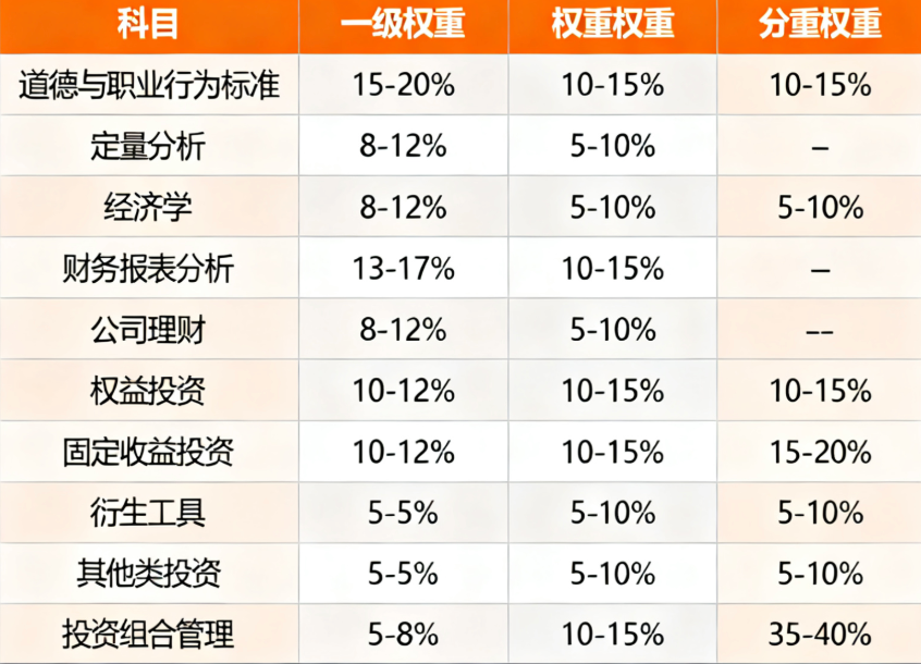 CFA考试科目及各年级权重:先搞懂要考啥