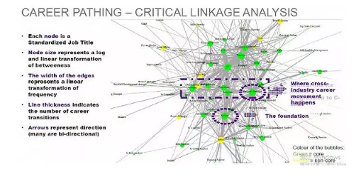 除了总结出以资产组合管理为首的一系列行业关键技能,大数据也通过对13万个职业发展历程样本的数据库分析动态给金融人才提供了未来可能发展道路的动态启示。