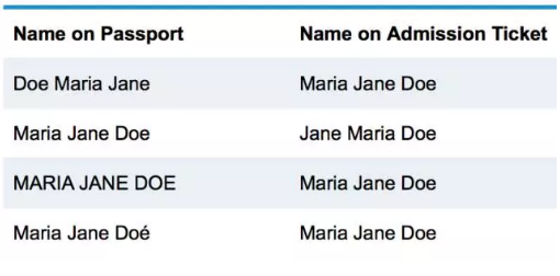 在姓名上,准考证和护照有一些不同是协会允许的,例如: