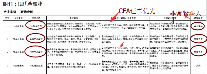 在金融高端人才需求方面,表示非常紧缺!重点突出以金融技能,硬性要求CFA、FRM、CPA证书等。(CFA证书涵盖的金融知识范围较广,对于职业发展的确很有帮助,尤其是在入职后,投行Research部门。)