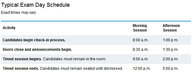 Typical Exam Day Schedule(考试入场时间、注意事项)
