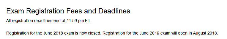 Registration for the June 2018 exam is now closed. Registration for the June 2019 exam will open in August 2018.