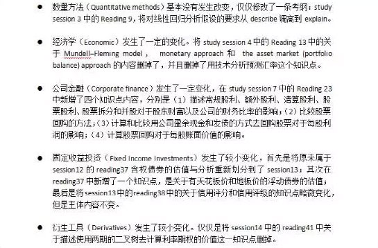 CFA二级考纲变化
