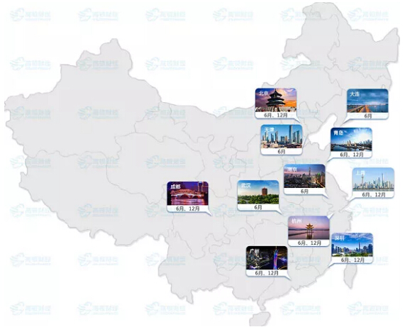 2019年6月中国CFA考点城市有:北京、上海、深圳、成都、大连、广州、杭州、南京、天津、武汉、青岛(新增)、香港、台北!