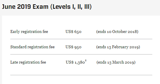 02.2019年6月CFA考试报名费用