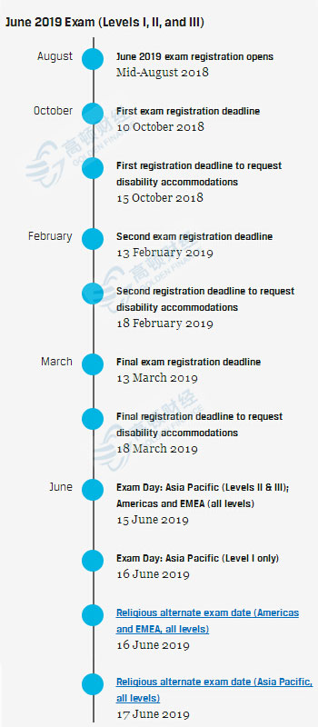 2019年6月16日 亚洲地区(Level I only)&宗教备选日(北美及EMEA All Levels)CFA当天考试