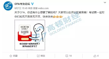 日前,高顿君在微博上发布一则消息,征集考友对CFA尚不了解的问题,承诺知无不言言无不尽。