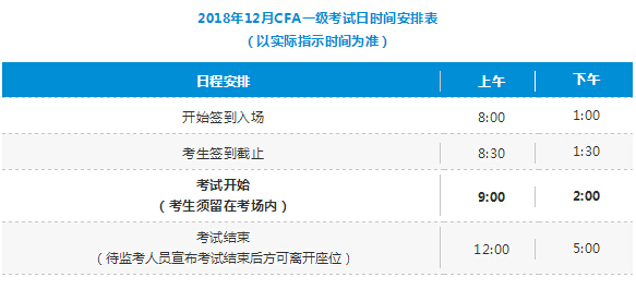 考试当日的正式起止时间以官方指定监考人员公布为准。如果考生未参加上午的考试,则不能参加下午的考试,上下午两场考试均参加才能有考试成绩。