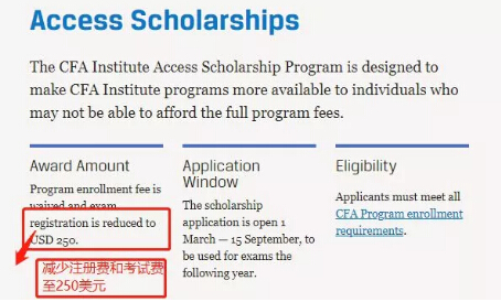 CFA协会大概是考虑到了这点,因此设立了“CFA助学金”,旨在帮助那些无力支付考试费用的,但是想考CFA的人减轻经济负担。