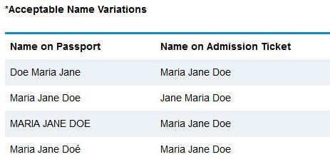 提供如下名称变体被接受的示例,CFA准考证与护照姓名对应规则: