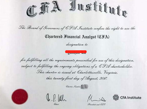 1) CFA官方特许资格认证证书(CFA Charterholder Certificate)