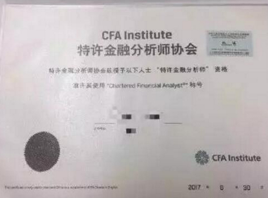 CFA证书一般即指官方标准版英文证书,证书为A2大小。