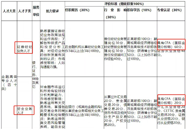 高级金融人才评价标准