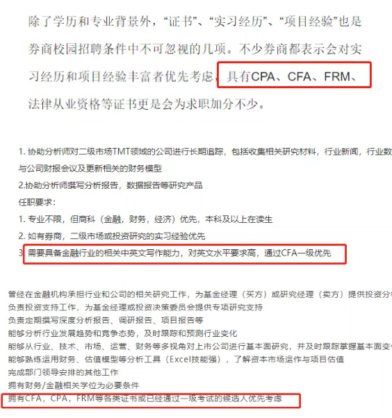 金融机构校园招聘,CFA一级是加分项