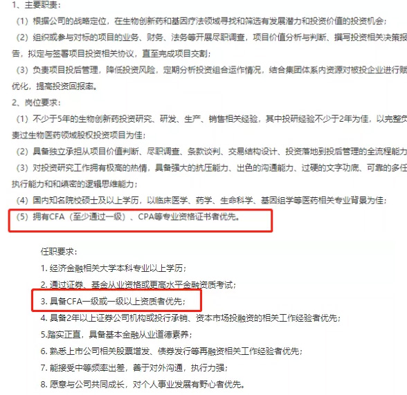 从类型分布来看,行业研究、投资类、基金行业、金融产品设计、私人银行业务等对投资分析要求较高的岗位对于CFA证书认可程度很高。