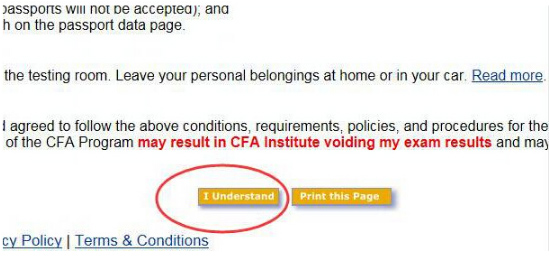 第五步:在接下来的页面,点击页面下方:I Understand按钮,然后会直接呈现准考证的页面,如果您的电脑已连接打印机,即可在线打印。