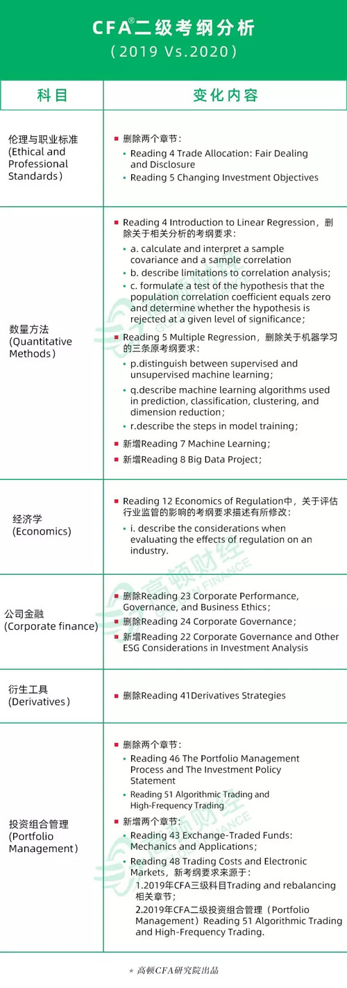 相较于2019年,2020年CFA二级考纲半数以上科目实质变化较大。