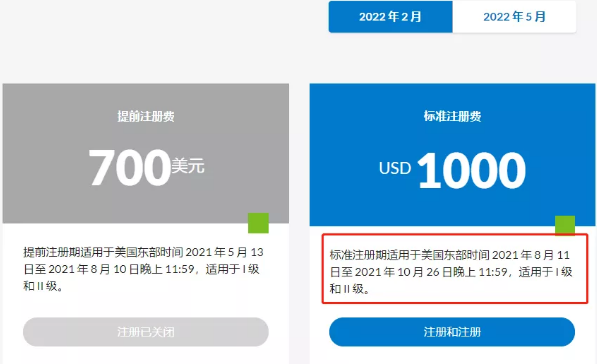 注册费:350$ 考试费:1200$(各阶段报名费不同,越早越便宜)