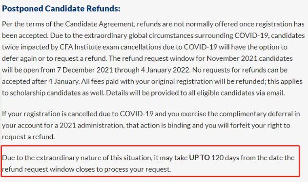 由于情况的特殊性,最长可能会在120天内退款(在网上自主申请,会统一通过电子资金划拨或者是Paypal的形式进行退款。)
