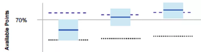 情况一:蓝色粗实线高于(或等于)70%(灰黑色细实线):成绩等级A