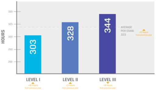 CFA二级考生平均投入的备考时长为328个小时;