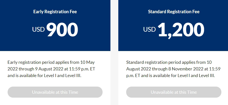 一阶段CFA考试的报名时间:2022年5月10日——8月9日