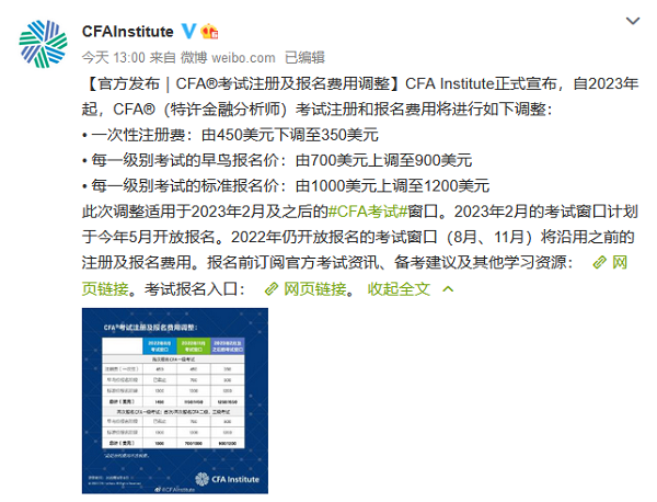 特别提醒:此次价格调整适用于2023年2月及以后的CFA考试。