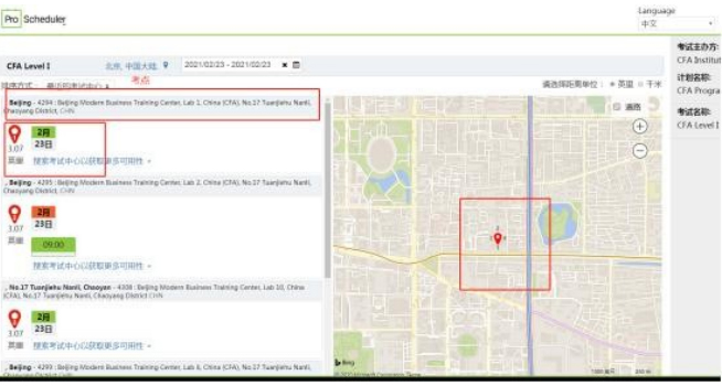 ( 注意: 考生需要完成 CFA 报名和缴费, 才能进行考点和考试时间的选择, 但是查询考试地点是免费的哈。)