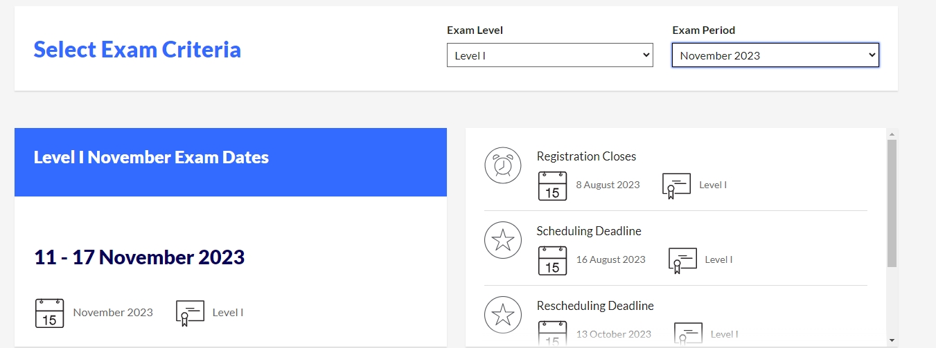 2023年11月CFA一级考试时间:2023年11月11日-2023年11月17日