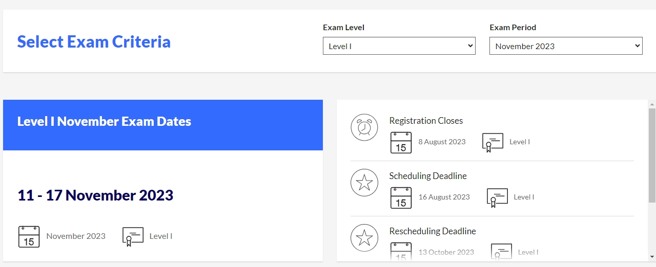 2024年11月CFA一级考试时间:2024年11月13日-2024年11月19日