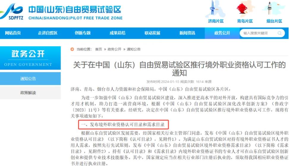 今年年初,山东发布《关于在中国(山东)自由贸易试验区推行境外职业资格认可工作的通知》,将CFA认证纳入需求目录。
