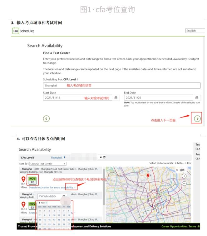 在官网完成报名付款后,考生可以登录CFAInstitute账号,点击CFAProgram模块→MyEnrollment页面,选择“ScheduleYourExam”,进入Prometric的考位预约系统进行具体考试日期、时间及地点的预约确认。