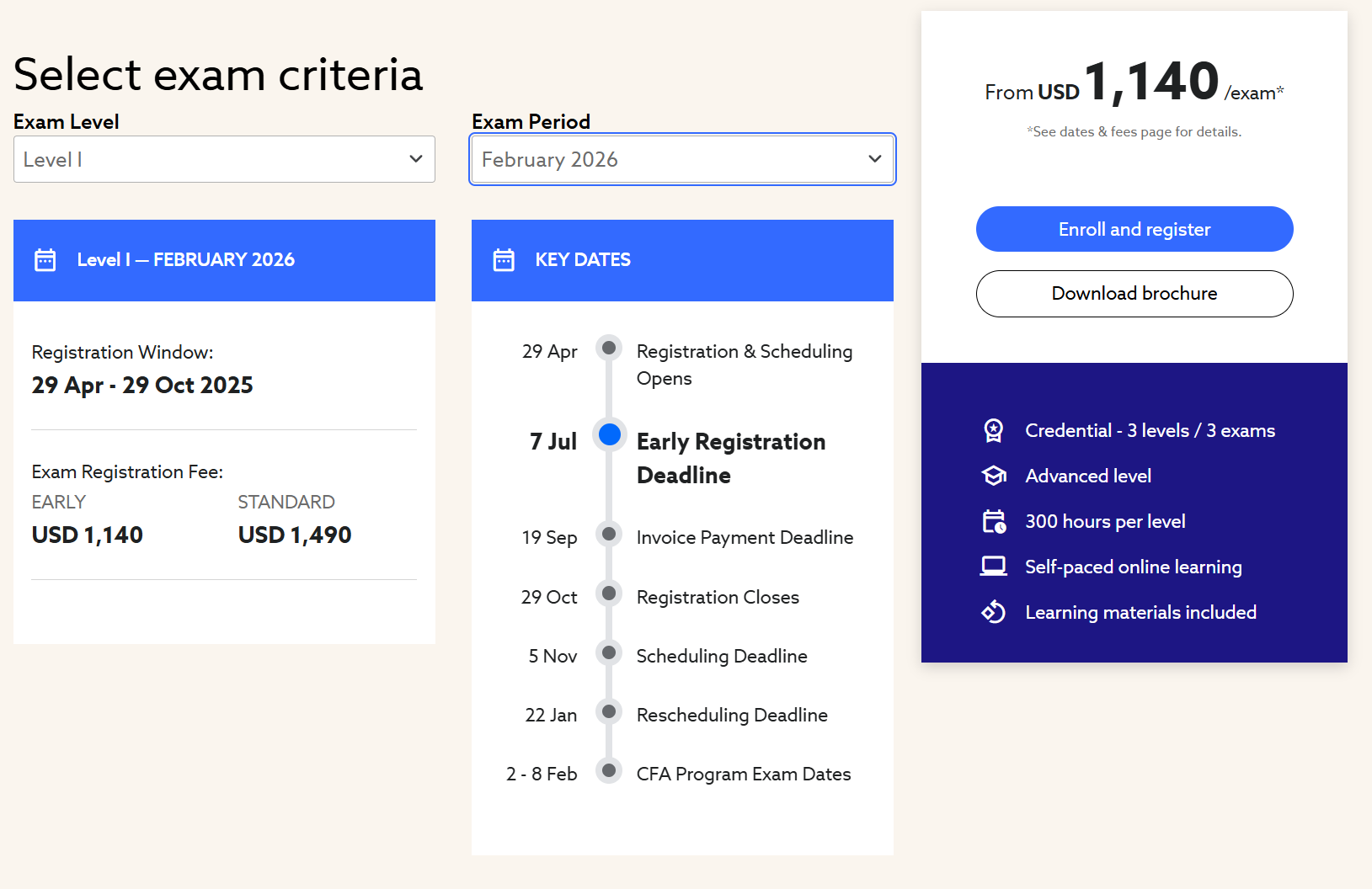 报名CFA一级考试时选择的考试窗口须处于学士学位课程或同等项目毕业月份前23个月(含)以内。例如,2027年6月毕业的四年制本科在校生最早可报名大二暑假(2025年8月)的CFA一级考试。