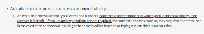 另外,essay写作题中文本框接受单词和数字,在短文框中单独输入正确的数值即可获得满分——不需要公式和解释。