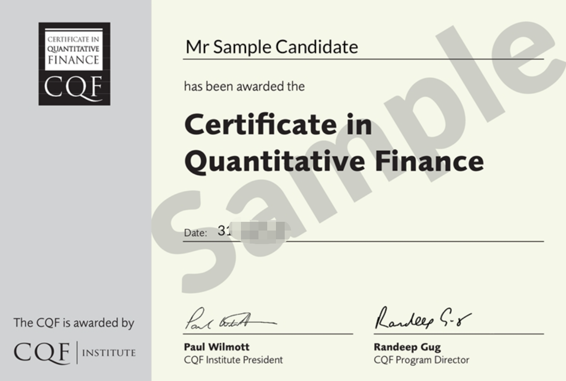 •认证机构:由英国量化金融专家Paul Wilmott教授设计,隶属于惠誉集团(Fitch Learning),全球90+国家认可,约11,500名持证人。