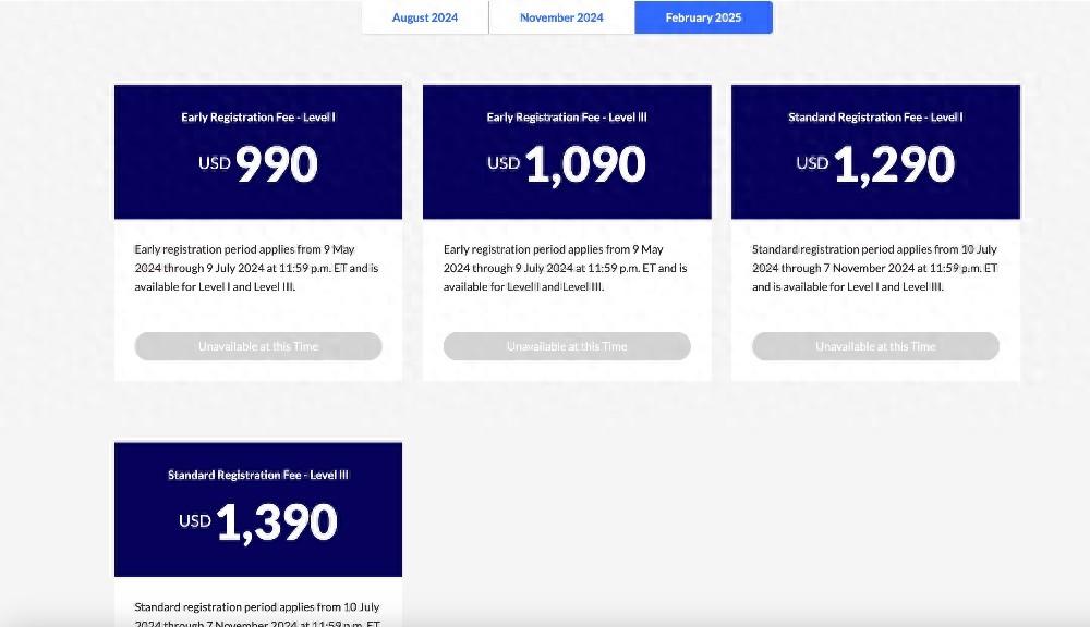 CFA考试分为三个级别,每个级别的考试科目和费用如下: